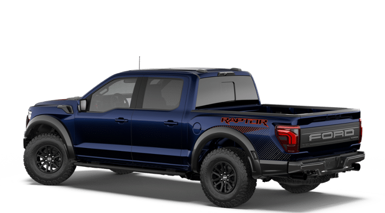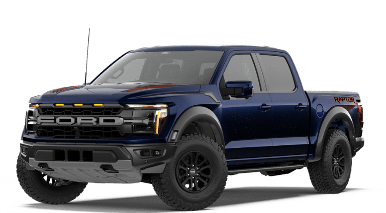 Antimatter Blue Metallic 2026 Ford F-150 Raptor 4WD 10-Speed Automatic 3.5L V6 EcoBoost INCLUDES WARRANTY, TRADITION CERTIFIED WARRANTY, 4WD, 14 Speakers, 17" Cast Aluminum Wheels, 4-Wheel Disc Brakes, ABS brakes, Adjustable pedals, Air Conditioning, Alloy wheels, AM/FM radio: SiriusXM with 360L, Auto High-beam Headlights, Auto tilt-away steering wheel, Auto-dimming door mirrors, Auto-dimming Rear-View mirror, Automatic temperature control, Brake assist, Bumpers: body-color, Compass, Delay-off headlights, Driver door bin, Driver vanity mirror, Dual front impact airbags, Dual front side impact airbags, Electronic Locking with 4.10 Axle Ratio, Electronic Stability Control, Emergency communication system: SYNC 4 911 Assist, Ford Connectivity Package (1-Year Included), Front anti-roll bar, Front Bucket Seats, Front Center Armrest, Front dual zone A/C, Front fog lights, Front reading lights, Front wheel independent suspension, Fully automatic headlights, Garage door transmitter, Heated door mirrors, Heated front seats, Heated rear seats, Heated steering wheel, Illuminated entry, Internet access capable: 5G Modem - Ford Connectivity Package, Lane Departure Warning System, Leather steering wheel, Leather Trimmed Seats, Low tire pressure warning, Memory seat, Navigation system: Connected Navigation, Occupant sensing airbag, Outside temperature display, Overhead airbag, Overhead console, Panic alarm, Passenger door bin, Passenger vanity mirror, Pedal memory, Power door mirrors, Power driver seat, Power passenger seat, Power steering, Power windows, Radio data system, Radio: B&O Unleashed Sound System by Bang & Olufsen, Rain sensing wipers, Rear reading lights, Rear step bumper, Rear window defroster, Remote keyless entry, Security system, Speed control, Speed-sensing steering, Split folding rear seat, Steering wheel memory, Steering wheel mounted audio controls, SYNC 4 with Enhanced Voice Recognition, Tachometer, Telescoping steering wheel, Tilt steering wheel, Traction control, Trip computer, Turn signal indicator mirrors, Variably intermittent wipers, Ventilated front seats.