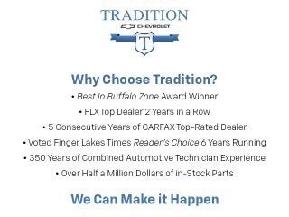 INCLUDES WARRANTY, TRADITION CERTIFIED WARRANTY, Auto High-beam Headlights, Bumpers: body-color, Compass, Delay-off headlights, Driver door bin, Driver vanity mirror, Equipment Group 200A, Exterior Parking Camera Rear, FordPass Connect, Front reading lights, Fully automatic headlights, Heated door mirrors, Illuminated entry, Leather steering wheel, Outside temperature display, Overhead console, Panic alarm, Passenger vanity mirror, Power door mirrors, Rear reading lights, Roof rack: rails only, Security system, Speed control, Spoiler.20/27 City/Highway MPG Odometer is 24373 miles below market average!At Tradition Chevrolet Buick, We Can Make It Happen !If you live in Seneca Falls, Waterloo, Canandaigua, Penn Yan or any surrounding community, Tradition Chevrolet Buick is your one stop shop for any Automotive need. If you find something you like and want to plan a test drive, call us at (315) 789-6811 prior to you making the drive to our Geneva location.